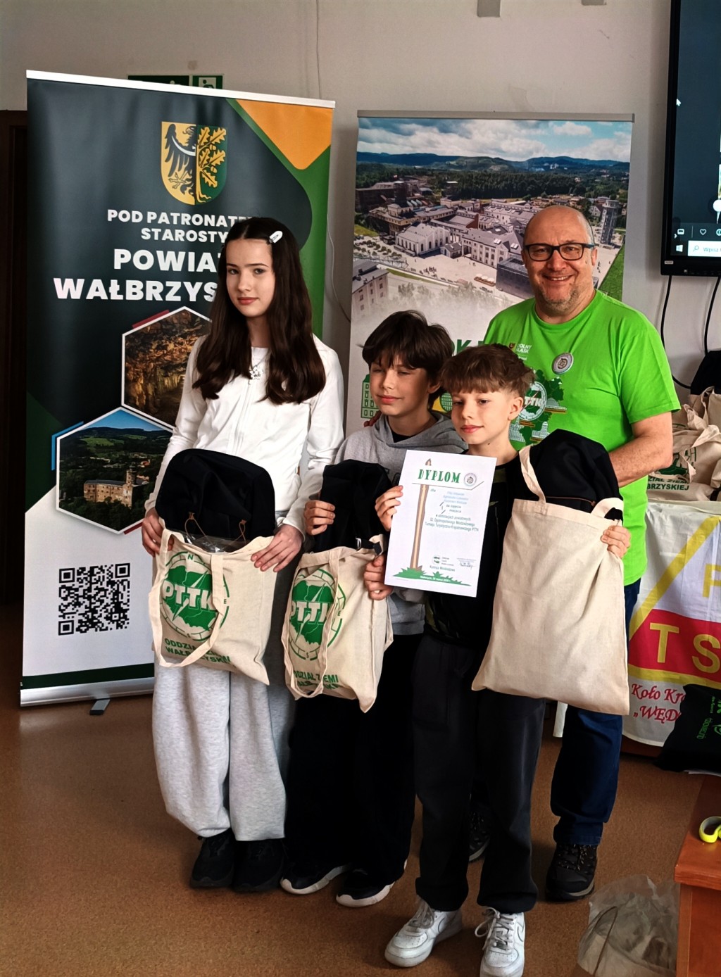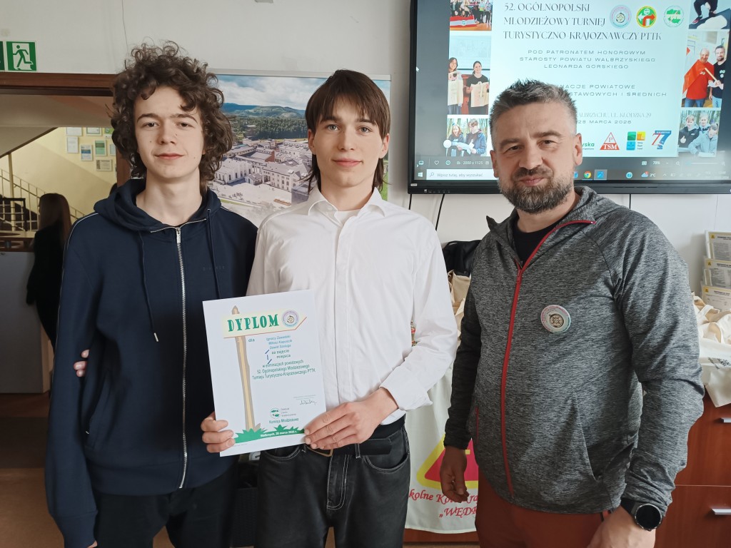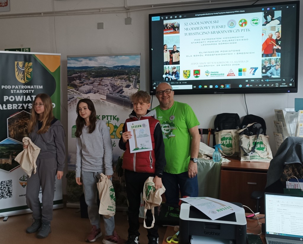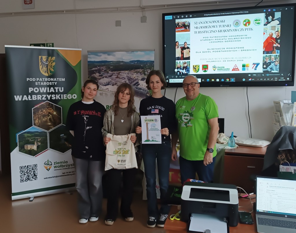 39 osób z 6 szkół Wałbrzycha i powiatu wałbrzyskiego brało udział w etapie powiatowym Ogólnopolskiego Młodzieżowego Turnieju Turystyczno-Krajoznawczego, zwanego potocznie Olimpiadą Krajoznawczą. 📚🚶🎒 Areną zmagań turystów stał się Zespół Szkół nr 7 w Wałbrzychu. Organizatorem przedsięwzięcia była Komisja Młodzieżowa wałbrzyskiego oddziału Polskiego Towarzystwa Turystyczno-Krajoznawczego. Koordynatorem przedsięwzięcia był Sekretarz naszego Oddziału Artur Ciempa. Wśród zaproszonych gości znalazł się Prezes Oddziału Zygmunt NowaczykUczestnicy konkursu odpowiadali na pytania dotyczące historii, geografii, geologii, walorów turystycznych regionu, topografii, bezpieczeństwa wycieczkowania i zasad ruchu drogowego. W części praktycznej musieli wykazać się umiejętnością wykonywania pierwszej pomocy, rozpoznawania atrakcji turystycznych Dolnego Śląska i grzybów. 🍄 Musieli też w jak najkrótszym czasie, możliwie bezbłędnie przejść trasę na azymut. 🧭 Jak zwykle, nasz Oddział był jednym z fundatorów nagród na turniej. W kategorii szkół podstawowych zwyciężyły dwie drużyny z Zespołu Szkolno- Przedszkolnego w Jedlinie- Zdroju, zaś w kategorii szkół ponadpodstawowych II Liceum Ogólnokształcące im. Hugona Kołłątaja w Wałbrzychu i I Liceum Ogólnokształcące z Oddziałami Dwujęzycznymi w Wałbrzychu. Laureaci będą reprezentować region wałbrzyski podczas finału wojewódzkiego w Gniewkowie koło Jawora.