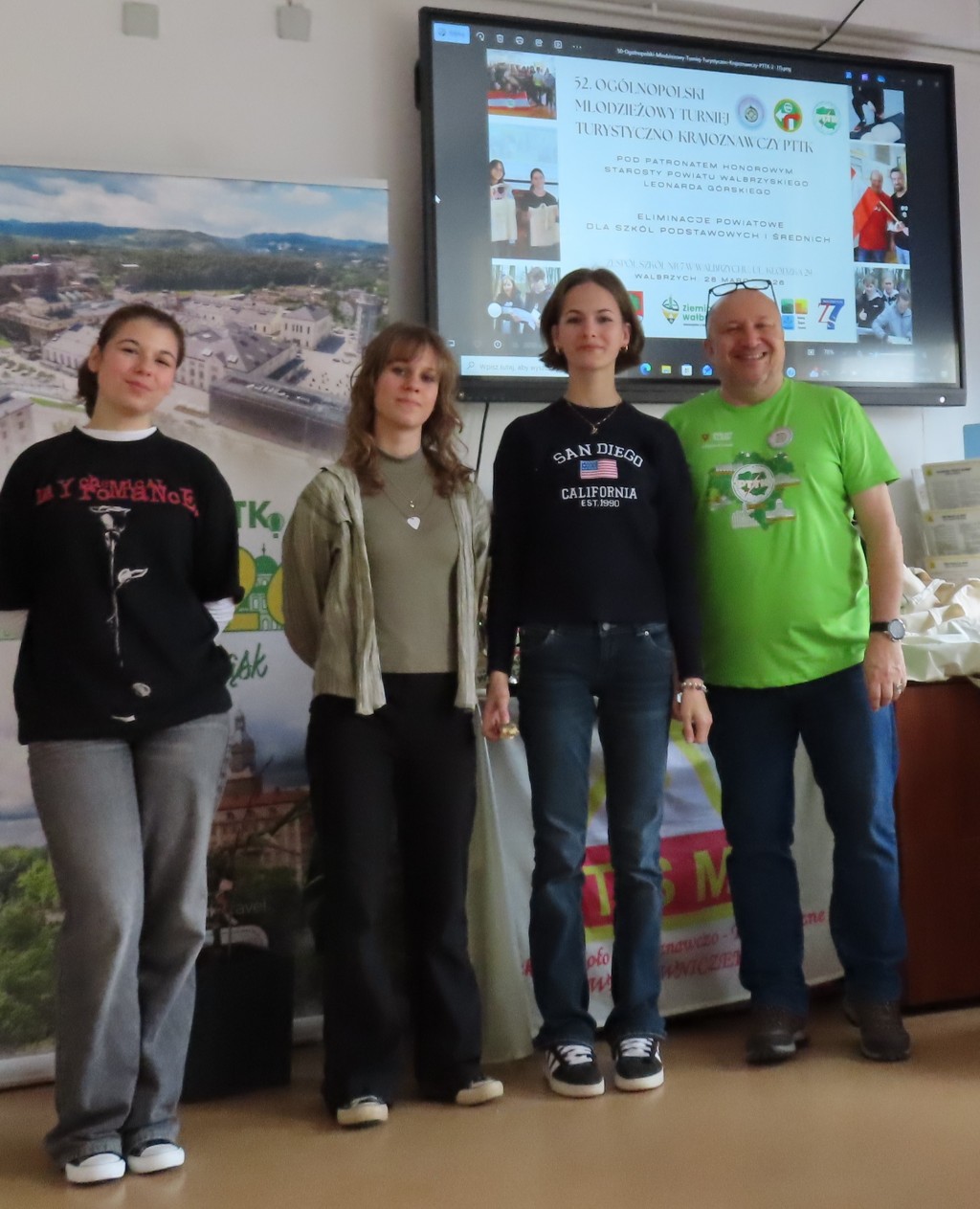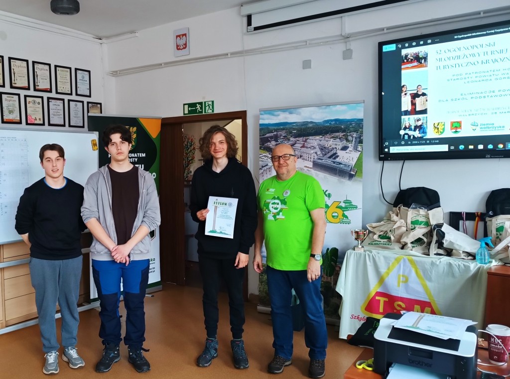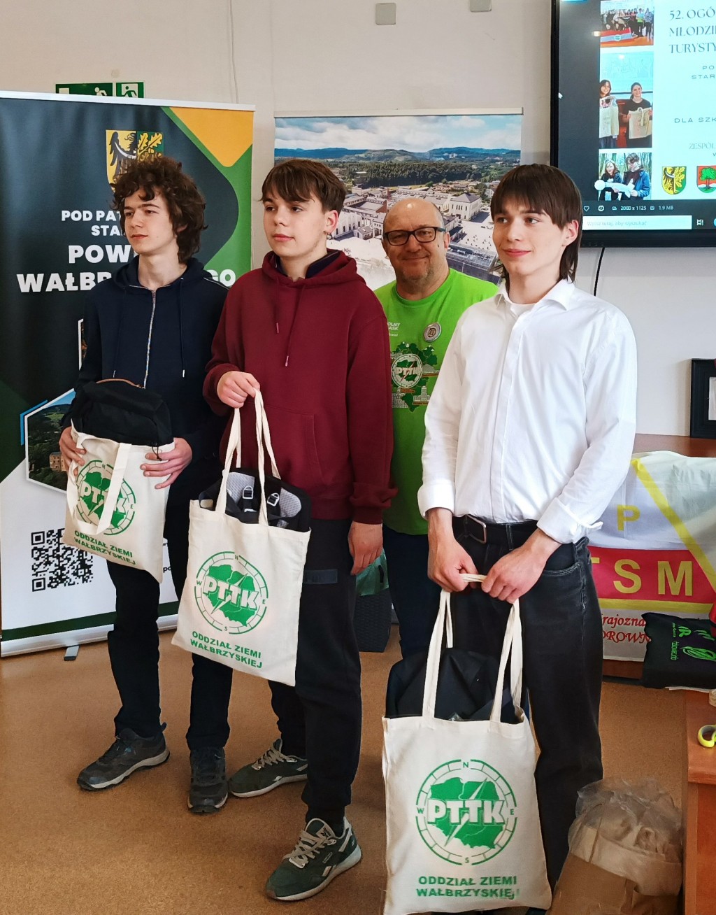 39 osób z 6 szkół Wałbrzycha i powiatu wałbrzyskiego brało udział w etapie powiatowym Ogólnopolskiego Młodzieżowego Turnieju Turystyczno-Krajoznawczego, zwanego potocznie Olimpiadą Krajoznawczą. 📚🚶🎒 Areną zmagań turystów stał się Zespół Szkół nr 7 w Wałbrzychu. Organizatorem przedsięwzięcia była Komisja Młodzieżowa wałbrzyskiego oddziału Polskiego Towarzystwa Turystyczno-Krajoznawczego. Koordynatorem przedsięwzięcia był Sekretarz naszego Oddziału Artur Ciempa. Wśród zaproszonych gości znalazł się Prezes Oddziału Zygmunt NowaczykUczestnicy konkursu odpowiadali na pytania dotyczące historii, geografii, geologii, walorów turystycznych regionu, topografii, bezpieczeństwa wycieczkowania i zasad ruchu drogowego. W części praktycznej musieli wykazać się umiejętnością wykonywania pierwszej pomocy, rozpoznawania atrakcji turystycznych Dolnego Śląska i grzybów. 🍄 Musieli też w jak najkrótszym czasie, możliwie bezbłędnie przejść trasę na azymut. 🧭 Jak zwykle, nasz Oddział był jednym z fundatorów nagród na turniej. W kategorii szkół podstawowych zwyciężyły dwie drużyny z Zespołu Szkolno- Przedszkolnego w Jedlinie- Zdroju, zaś w kategorii szkół ponadpodstawowych II Liceum Ogólnokształcące im. Hugona Kołłątaja w Wałbrzychu i I Liceum Ogólnokształcące z Oddziałami Dwujęzycznymi w Wałbrzychu. Laureaci będą reprezentować region wałbrzyski podczas finału wojewódzkiego w Gniewkowie koło Jawora.